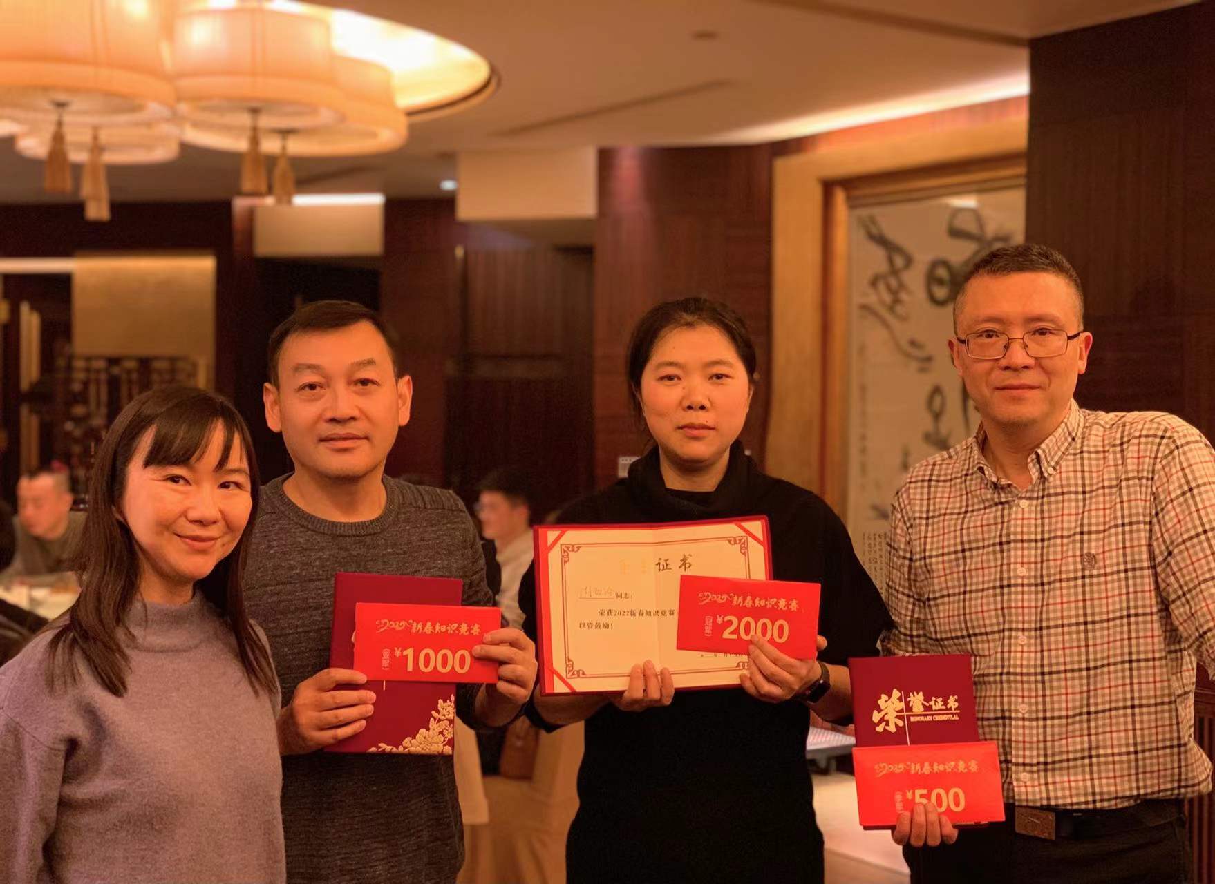 2022年1月15日,丰汇陆离集团新春团拜会暨第八届知识竞赛在公司顺利举办。在热烈的掌声中,丰汇陆离集团董事长廖丹上台作年度总结及新春致辞。董事长在总结中指出,今年是忙碌的一年,公司在传统金融领域继续稳步前进,对于房地产、教育等行业也展开了探究与摸索。肯定了公司各部门的辛勤付出,回顾了工作中的收获与不足,再次强调“让公司成为员工的家,让公司成为客户问题的解决者,社会责任的践行者”的经营理念。最后,董事长在即将来临的新春之际,提出了对公司未来的发展思路 ,向公司广大员工致以美好的新春祝愿。